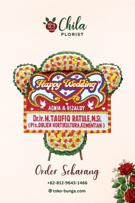 Rayakan momen bahagia dengan papan bunga yang cerah dan elegan. Cocok untuk ucapan selamat dari keluarga atau rekan bisnis.